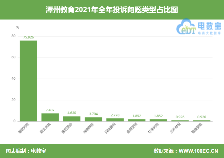此外,国内知名网络消费纠纷调解平台“电诉宝”受理用户维权案例显示,潭州教育疑似存在退款问题、霸王条款、售后服务、网络欺诈、网络售假、虚假促销、订单问题、货不对板、退换货难等问题。(“潭州教育”投诉专区)