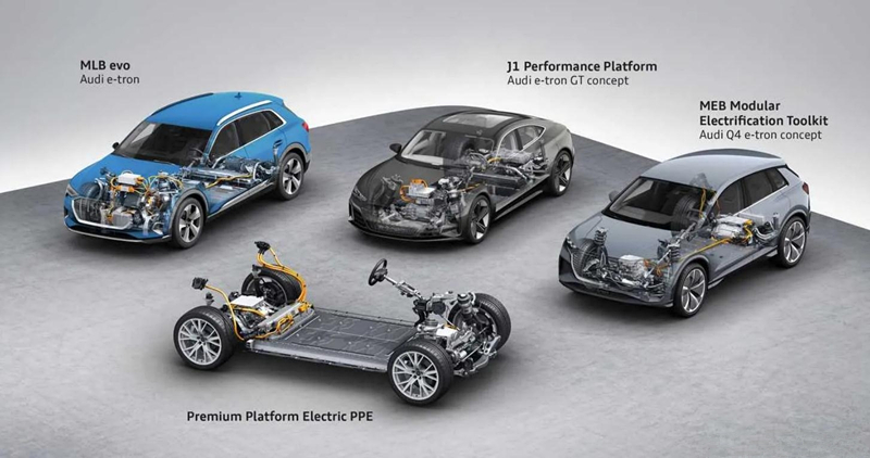 并且,奥迪根据不同的定位,旗下有四大平台,具体如下:MLB evo拓展平台、J1 Performance性能平台、MEB模块化电驱动平台和PPE(Premium Platform Electirc)高级电气化平台。