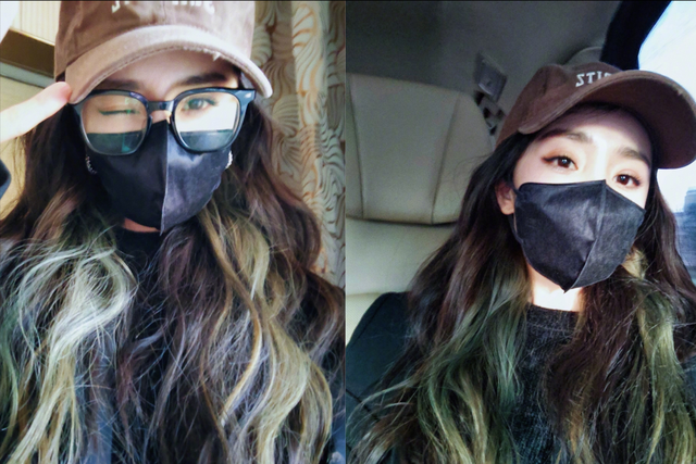 想要一点新鲜感个性感,但不想太浮夸就可以用挑染,挂耳染。比如杨幂就非常爱。近期的自拍她就是绿色的挂耳染卷发。加入一抹彩色之后,比一整头的深色大波浪要和街头感的穿搭更搭。