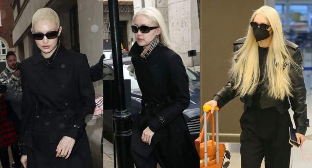 Gigihadid就更大胆了,最近染了一个非常浅的金色,机场街拍像变了一个人,因为发色太浅梳大光明也像是光头,似乎还是她原来的金发更适合她?