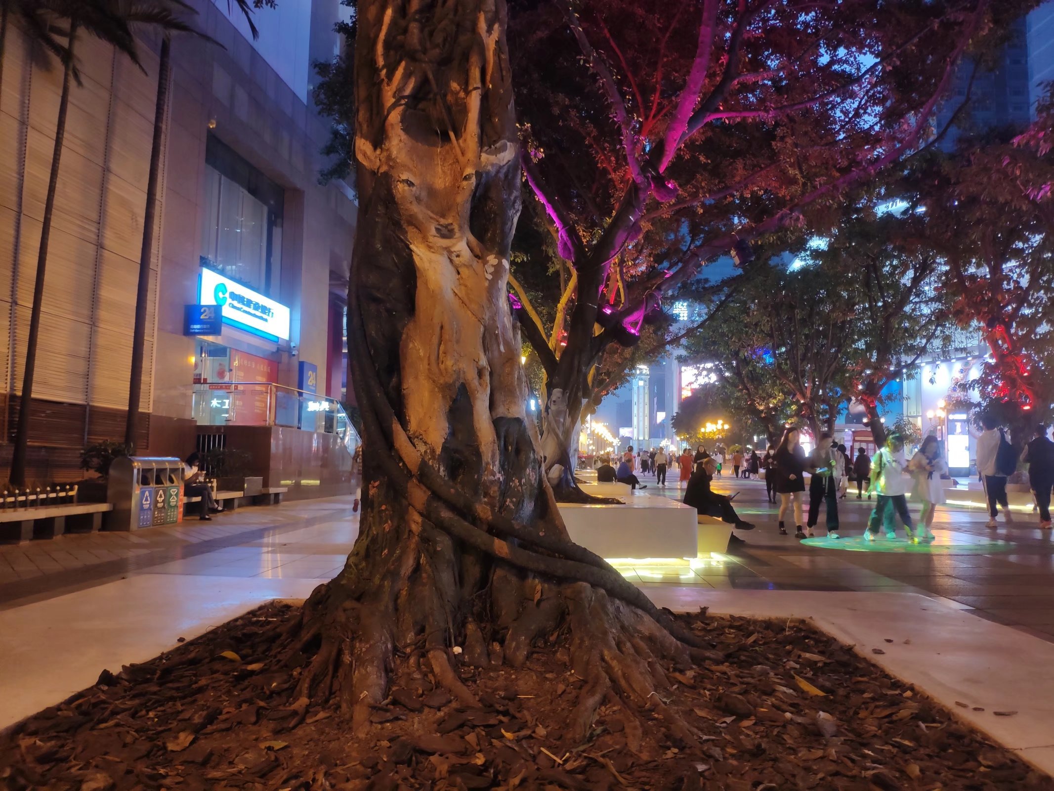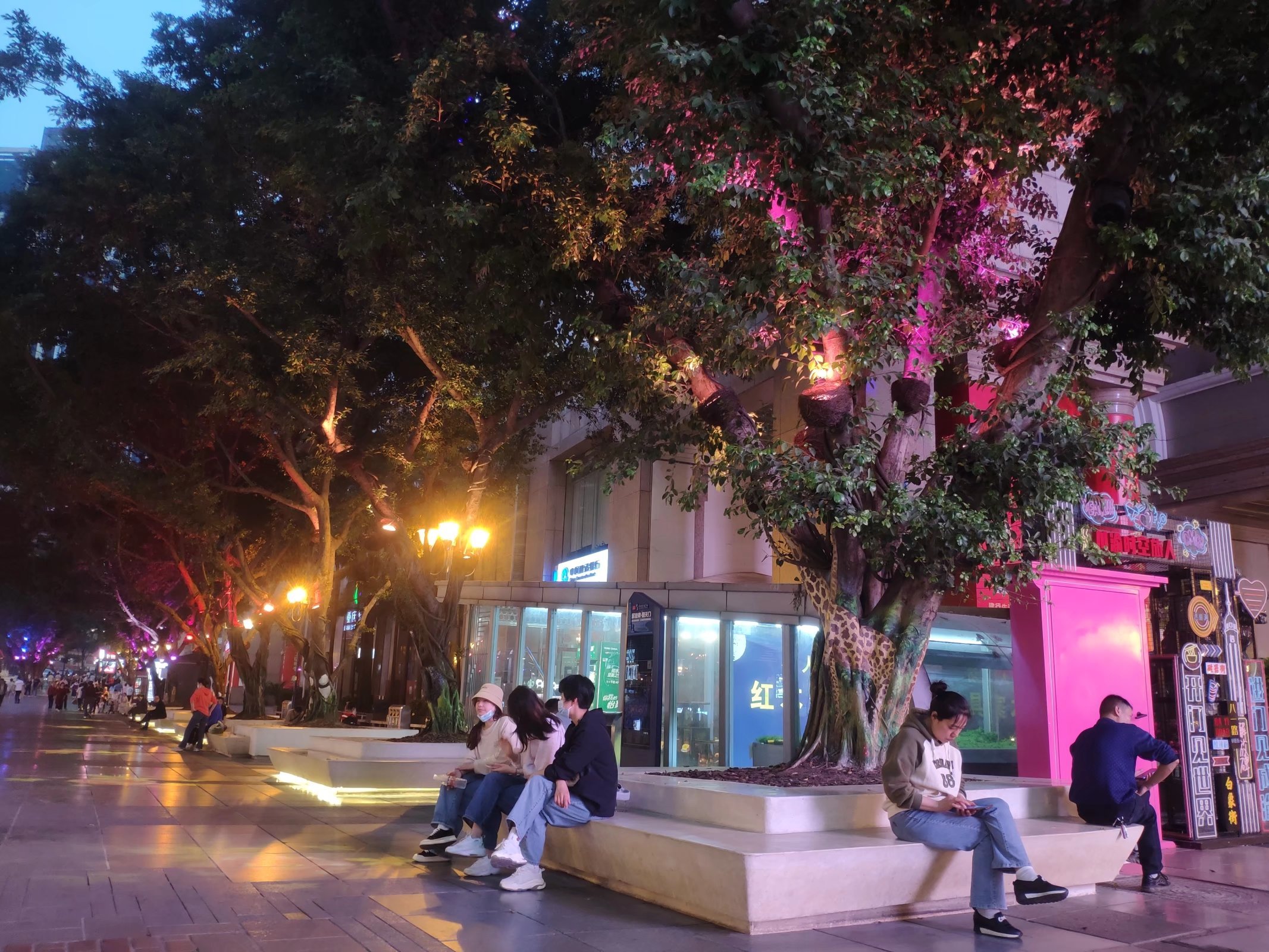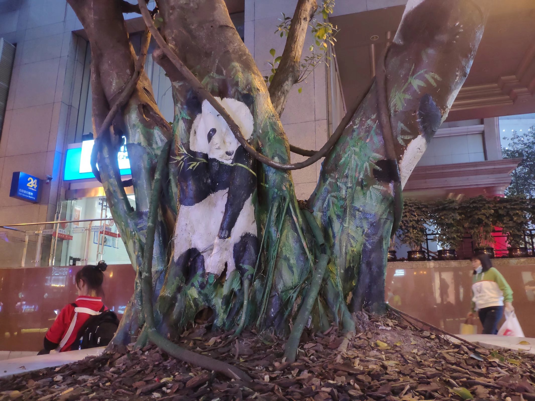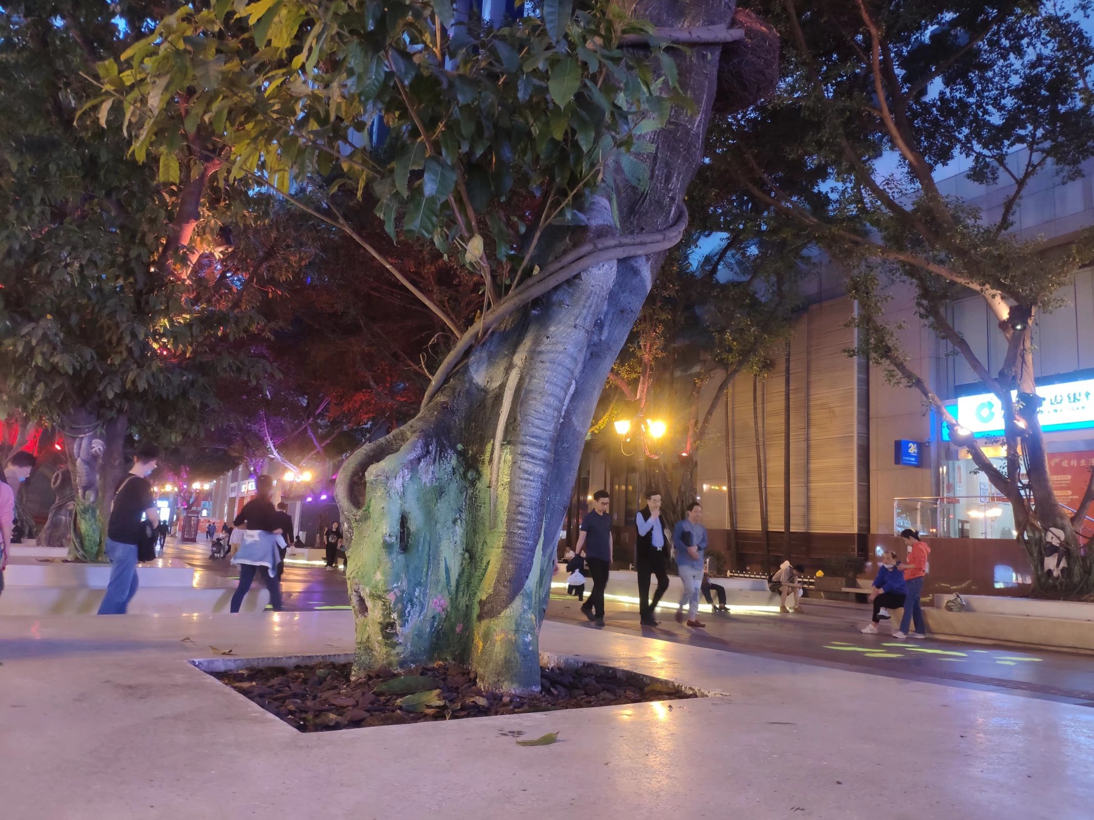 2022年3月15日,每个人的心中多多少少都怀揣着童话梦,童话里的世界如幻梦般浇灌着我们心灵。笔者在重庆市渝中区解放碑步行街看到,一个个憨态可掬、灵气逼人的小动物不知不觉“爬上”两旁的黄桷树,仿如童话里的动物走出树外,照亮现实。栩栩如生的“萌宠”与闹市相映成趣,使得游客们纷纷前来合影留念。只见每一棵大树都根据树干形状绘制有不同的动物,有长颈鹿、大熊猫、孔雀、大象和猴子,还有《疯狂动物城》里的“闪电”树懒、《狮子王》里的“丁满”狐獴等十多种动物。“这些彩绘很漂亮,它们让解放碑生机盎然。都是树绘创作者结合树体形态巧妙绘制而成,给原本单调的行道树增添不少趣味,变为生趣盎然的“动物森林”。