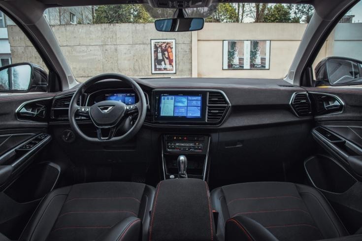 进入车内,新车搭载了8英寸FPK全新液晶仪表,更具科技感。大量采用了翻毛皮材质包覆,辅以镀铬装饰条与红色双缝线点缀,大大提升内饰精致感。座椅选用打孔皮质与翻毛皮拼接混搭设计,兼顾了视觉档次感及乘坐舒适性。