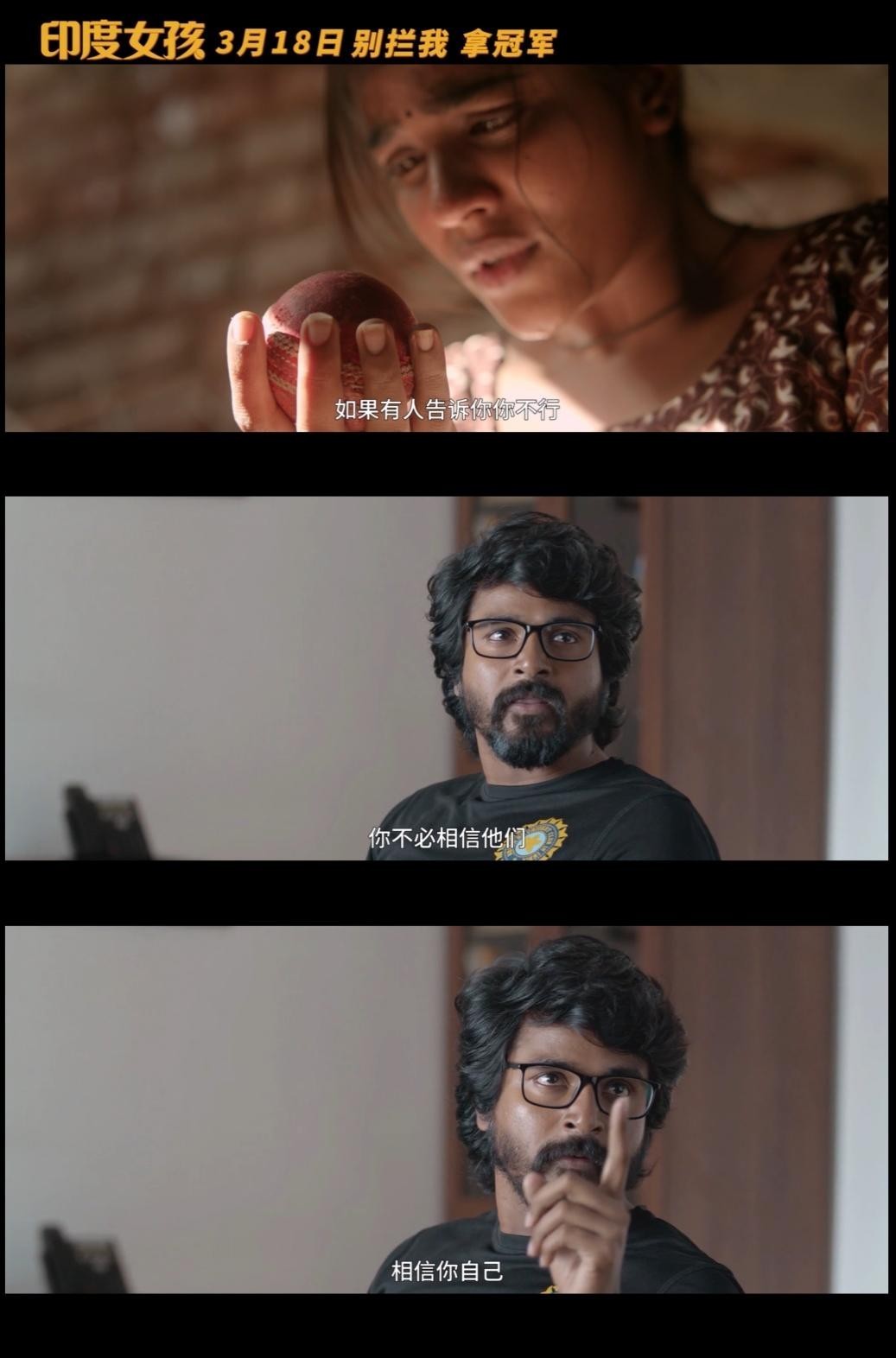 “和《摔跤吧爸爸》相比,板球运动相对更加小众,但是在这种不太了解的运动电影中,我们更能感受到运动的魅力,更能感受到少女在父亲的支持和母亲的激励下冲破重重禁锢拥抱自己梦想的感动,五星好评!”