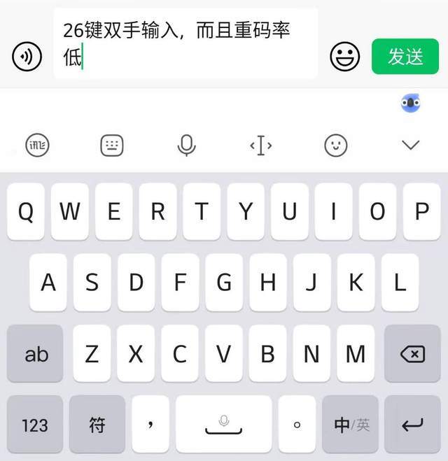 00后普遍没有接触过带实体键盘的功能机,而且从学生时代开始学习电脑,对电脑键盘再熟悉不过。从理论上来说,26键可以通过双手配合协同打字。事实上,26键原型就是电脑键盘,一个字母一个键,输入的重码率极低。当00后换上触屏的智能手机后,继续使用26键虚拟键盘,熟悉程度高,连盲打也没有问题。
