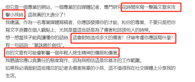立威廉发布长文痛斥了该媒体的行径,称其专门花时间写一整篇文章来攻击小孩实在是太过分了,他问作为一个专业媒体记者,有没有相关自己应该写些什么,如果小孩在看到他写的报道后会造成多大的伤害,他的文字可能会对一个年轻人造成终生的精神伤痕。