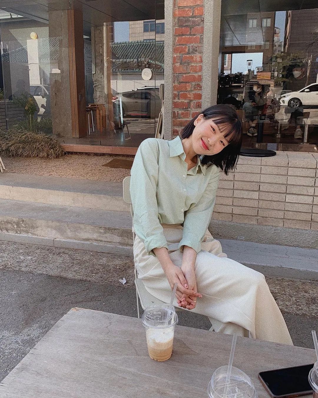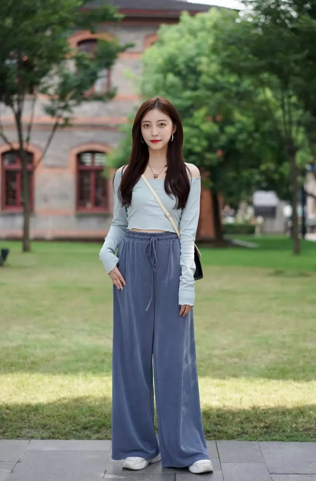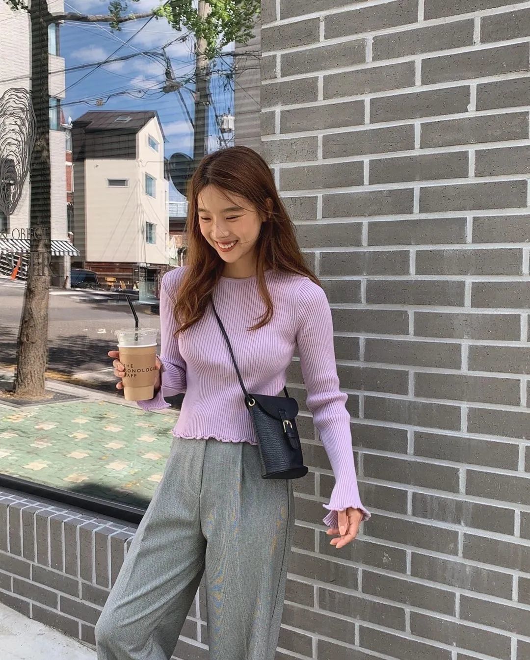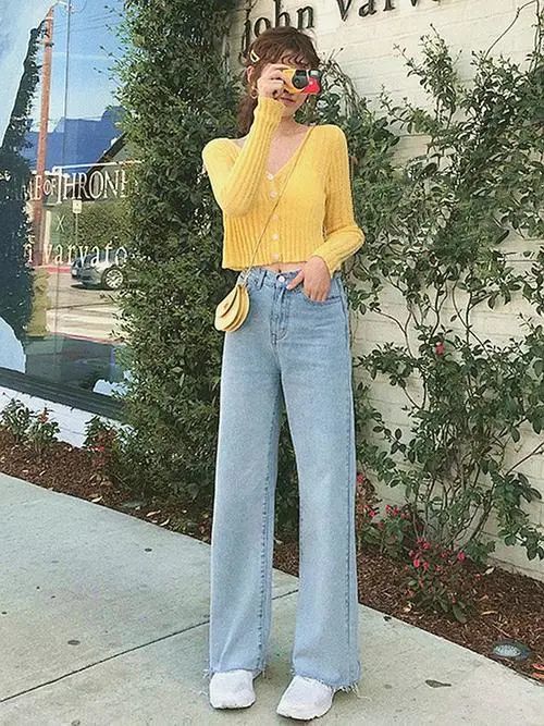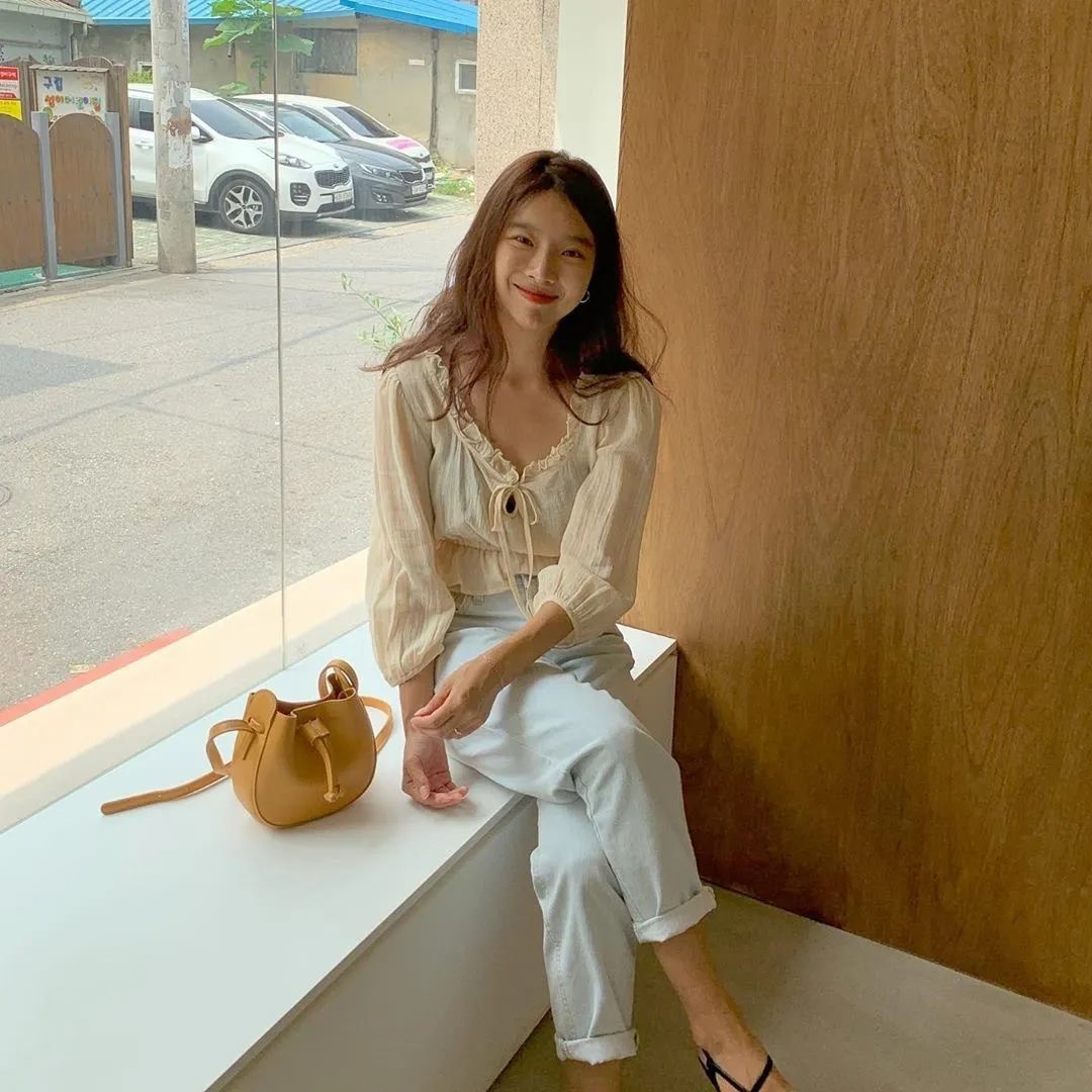 短款小衫+直筒裤,不需要过多的修饰就能营造出“上半身短一截,下半身就长一公分”的高挑的气质!