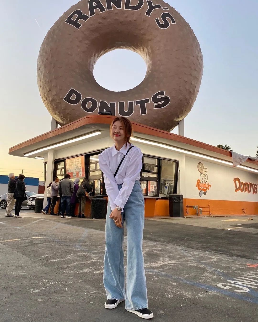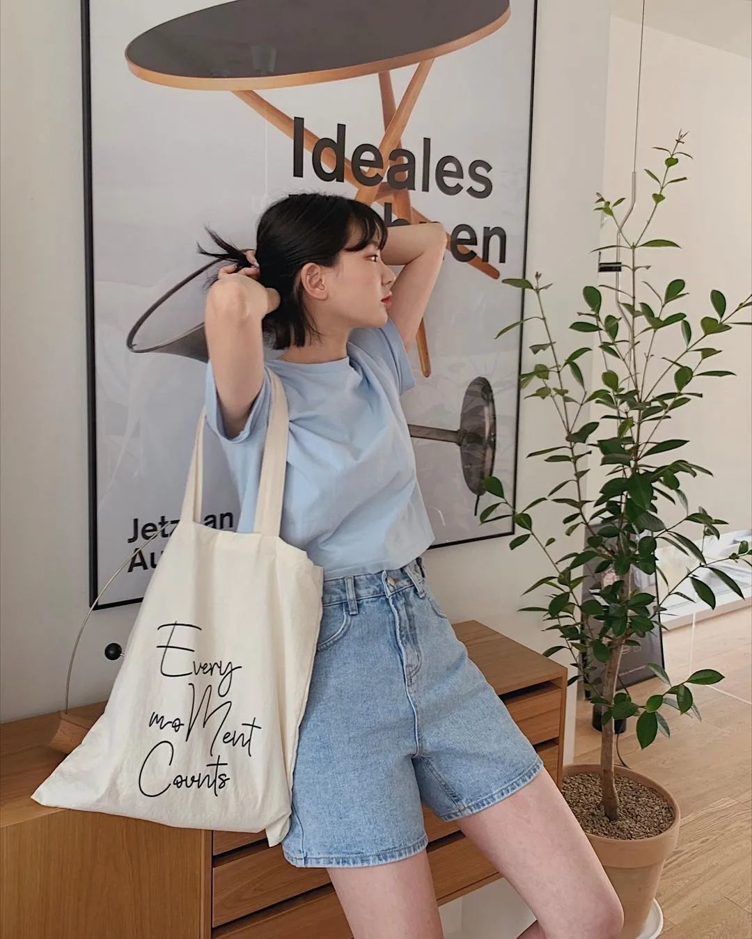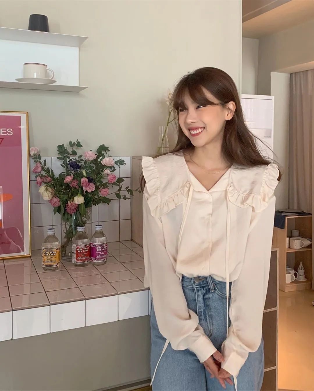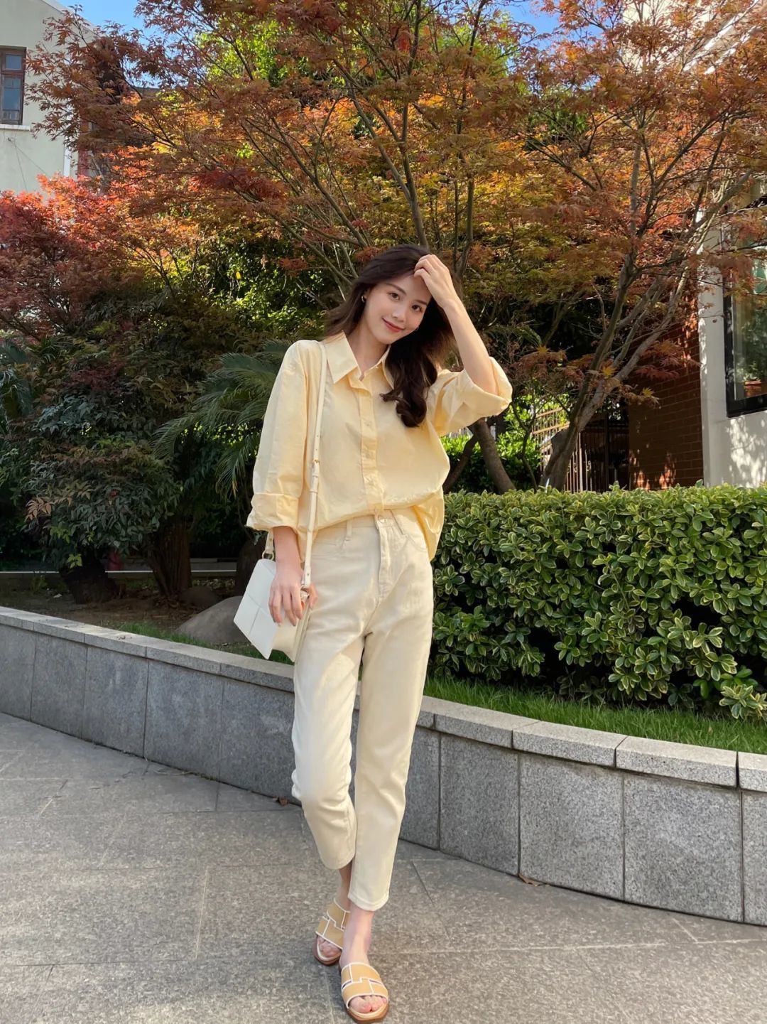 短款小衫+直筒裤,不需要过多的修饰就能营造出“上半身短一截,下半身就长一公分”的高挑的气质!