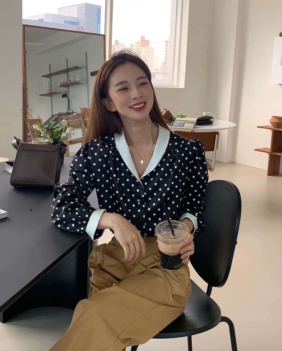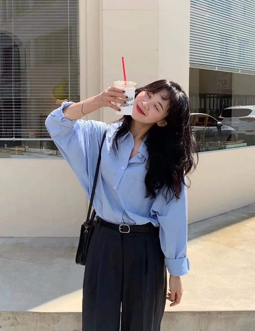 将衬衫别进裤装中,提高腰线比例,整体呈现上短下长的视觉感,显瘦又显高挑,小个子女生也能轻松驾驭的游刃有余!