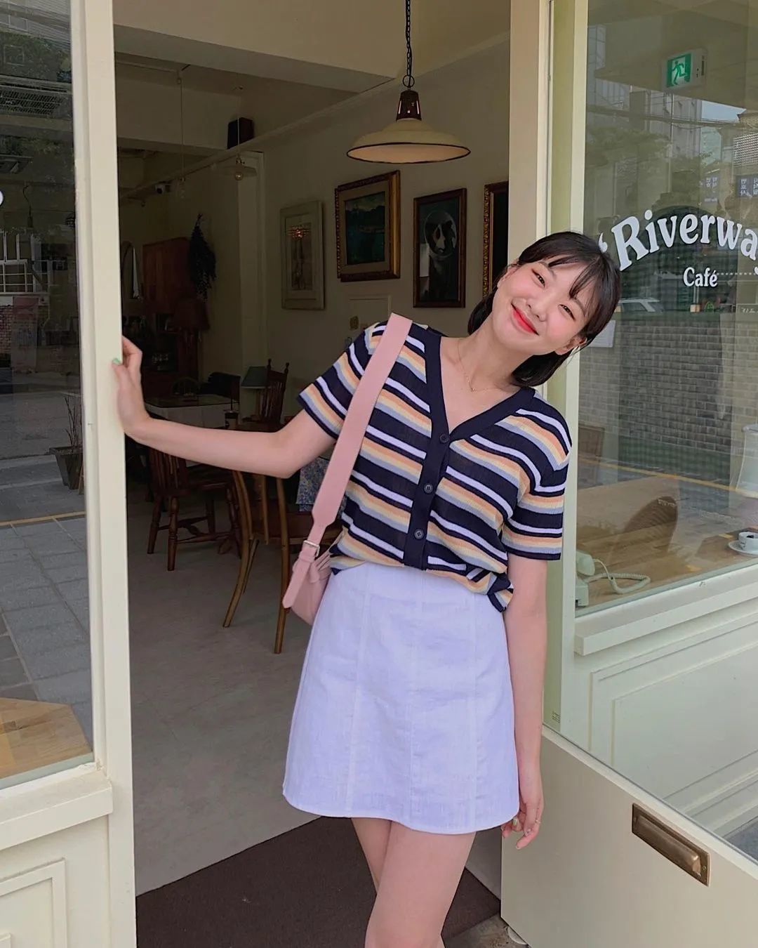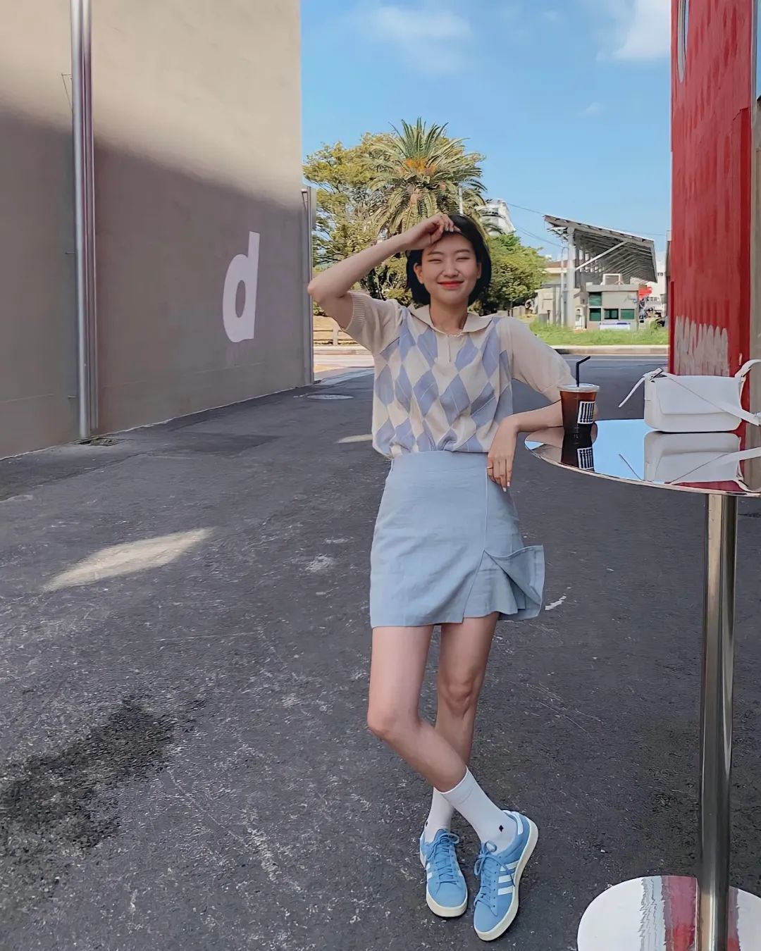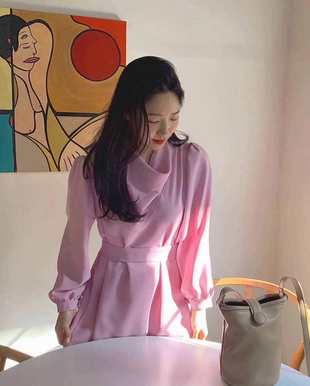 想要穿出甜美的感觉,只靠黑白灰的基础色很难做到,但是加入轻盈的浅色系,就能让人眼前一亮。