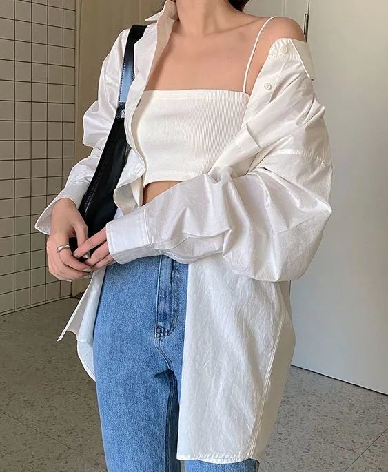 气质这块,衬衫更是独挡一面的存在,宽大的衬衫穿在女生身上非但不觉得男性化,反而有种别样的柔美感。