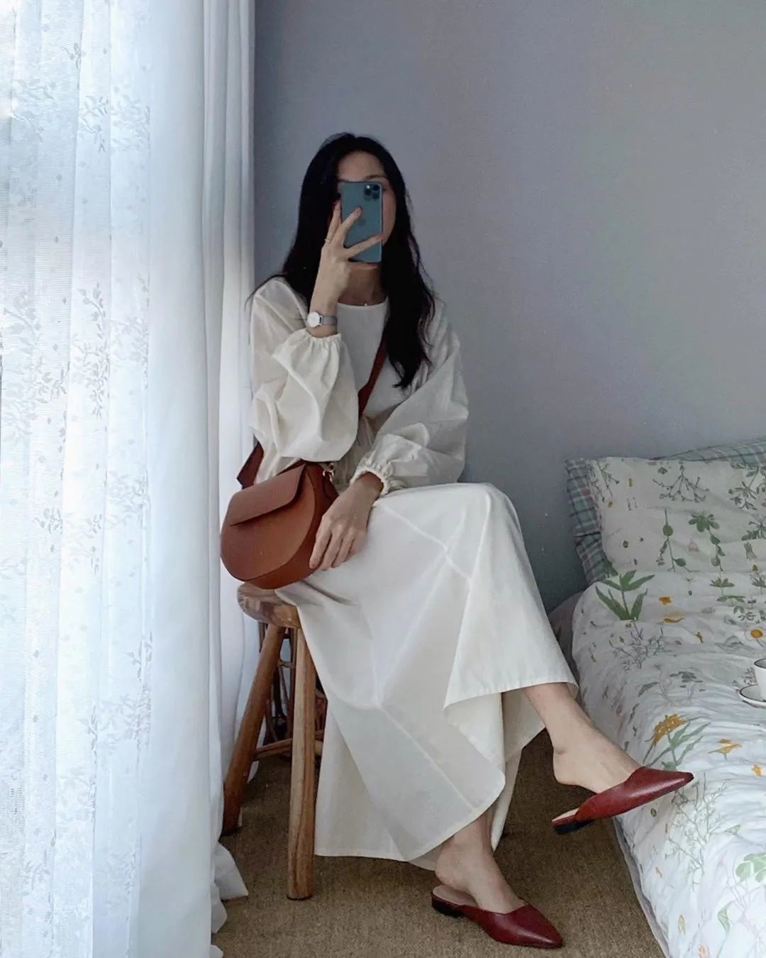 香芋紫绸缎连衣裙混搭白色单鞋,亦或白色帆布鞋都超显精致,彰显穿衣质感的同时浪漫又复古!