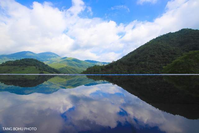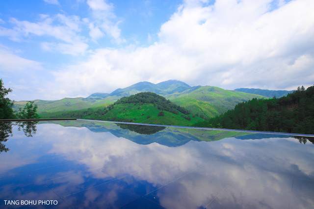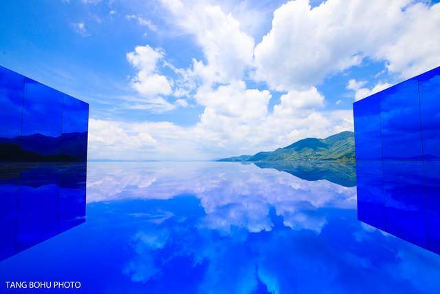 到一处景色最美的地方,这里有一面人工铺设的蓝色玻璃,在蓝天白云下,玻璃反光看上去和把天空倒映在玻璃里,从玻璃的底部看,天空和远处的山都和玻璃里面融在一起,美如画。有到这里旅游的千万不要错过到这里来打卡哦。