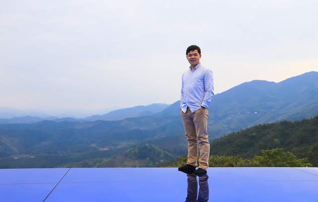 坐车沿着弯弯曲曲的公路一路爬上山顶,来到山上最顶处,沿着森林往外走去,先通过一座玻璃天桥,从这里可以看到大丫山的全景,翠绿色的竹林,四周全都是绿绿的树木,蔚蓝的天空下景色美不胜收,这更是天然的氧吧,呼吸着新鲜的空气。