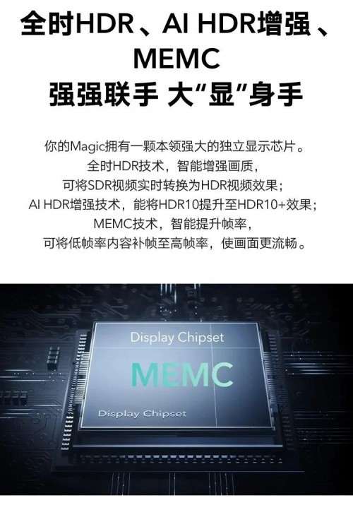 独立的MEMC显示芯片,AI HDR增强,