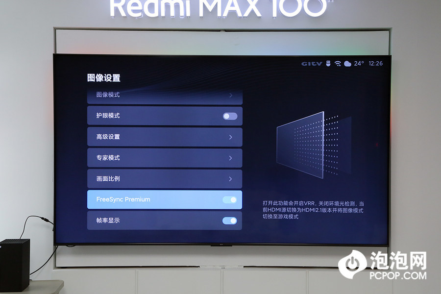同时,Redmi MAX 100"巨屏电视支持FreeSync Premium,使得120Hz显示设备实现无撕裂 /低闪烁/低延迟,同时引入低帧率补偿技术(LFC),LFC 有助于确保当游戏的帧率低于显示器支持的最低刷新率时,帧会显示多次,以便保持显示器以更高刷新率保持流畅的游戏体验。