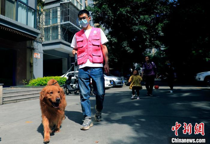 在成都市某小区门卫室拿到宠物主人预留的钥匙,“90后”宠护师陈聪熟练地上楼、开门,金毛犬“奥巴”摇着尾巴欢快跑出,热情迎接这位多次见面的“老朋友”。“‘奥巴’,我又来啦!”摸了摸“奥巴”的头,陈聪为它套上牵引绳,带它向外走去……