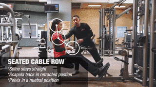 胸椎挺直肩膀下沉,双腿蹬实踏板,后拉肩胛后收,双手顺势肘部往后拉,有意识挤压背肌,回到初始位置。(三组,每组 15 下,组间休息 20 秒)