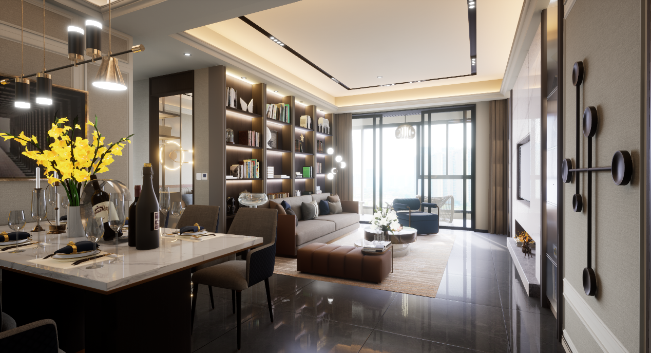 走出厨房便是一体化餐客厅,但是餐厅与客厅又相对分离。餐厅方正宽敞,用餐、休闲两不误,且与厨房相近,动静相宜,在保证使用便利性同时,又体现出独立餐厅的舒适感。