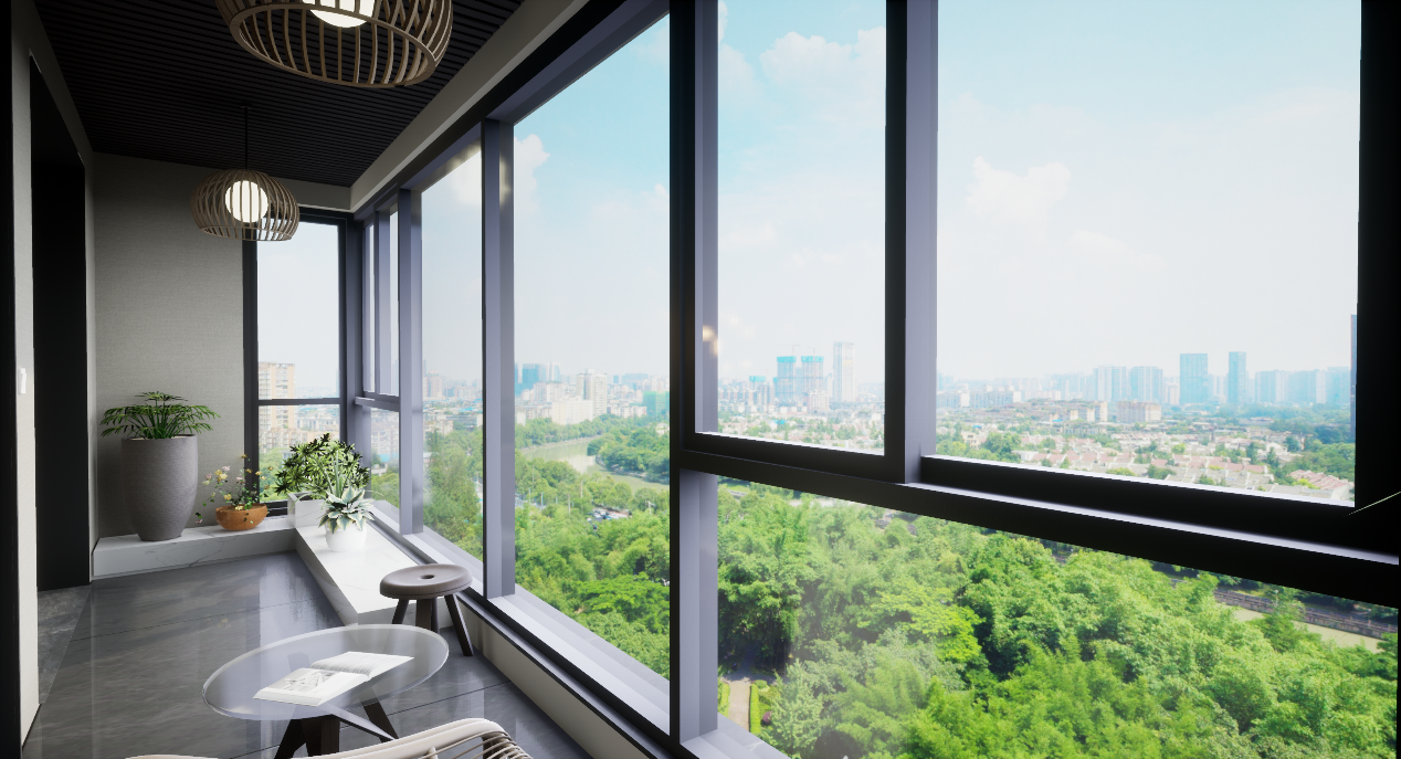 该户型客厅原本大横厅交付,后期业主可根据实际居住情况,把横厅隔断,设计2房或者3房。客厅与大面宽景观阳台相连,这样整体空间显得更加开阔大气,在阳台上打打牌,喝喝茶,享受着阳光的沐浴,欣赏着社区的景观,一定非常惬意。并且阳台采用超大的落地窗设计,使用LOW-E中空玻璃,既可以隔音降噪隔热防辐射,更保障了住户的隐私性及舒适性。