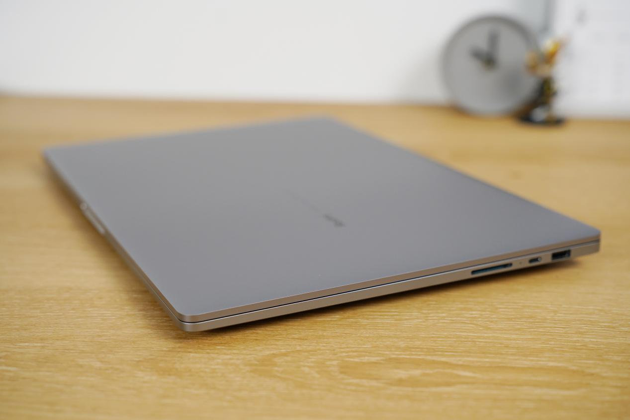 虽说Redmi Book Pro 15 2022换了新模具,但整体风格依旧一脉相承,A、C两面都采用了CNC一体精雕工艺,6系航空级铝合金材质,具备抗腐蚀、抗氧化特性,辅以高端笔记本常见的170号精密陶瓷喷砂工艺,机身触摸手感细腻温润,极具光泽感。