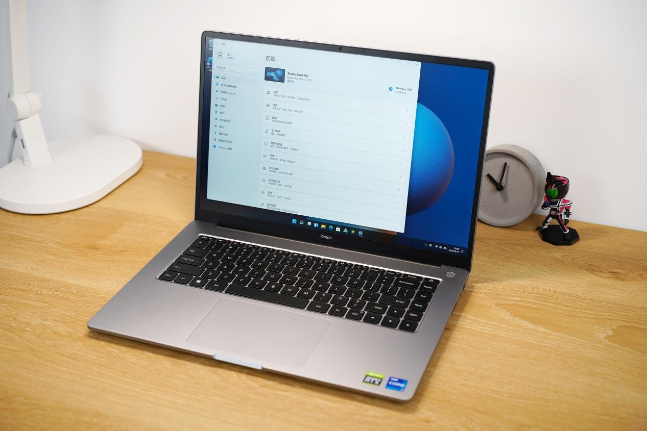 屏幕方面,Redmi Book Pro 15 2022配备一块15.6英寸3200* 2000分辨率16:10黄金屏幕比例的超视网膜全面屏,Delta E < 1.5色准,100%sRGB高色域,400尼特峰值亮度,1500:1对比度,Light Sensor智能感光,DC调光,莱茵TüV硬件低蓝光认证,60Hz/90Hz两档刷新率切换,实际观感颇佳不怕辣眼睛。
