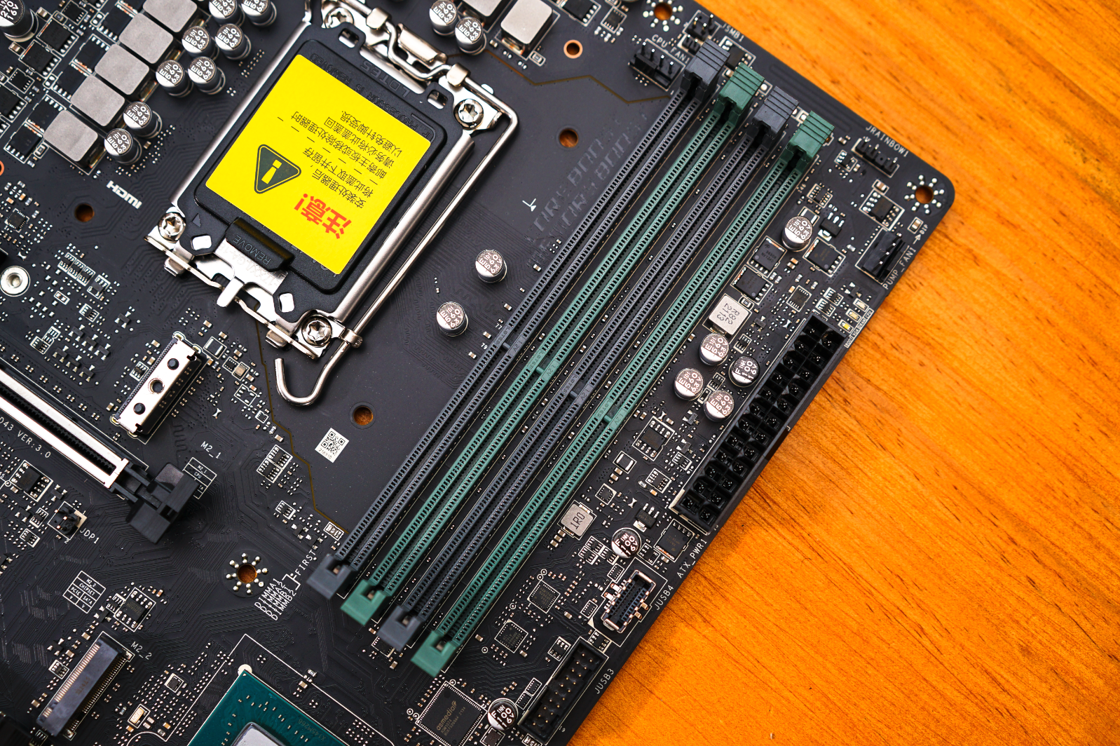 内存为插槽,一相供电,最大支持DDR 4800MHz(OC)频率。同时旁边还有四个LED指示灯,用于指示Bug,方便用户排查故障。