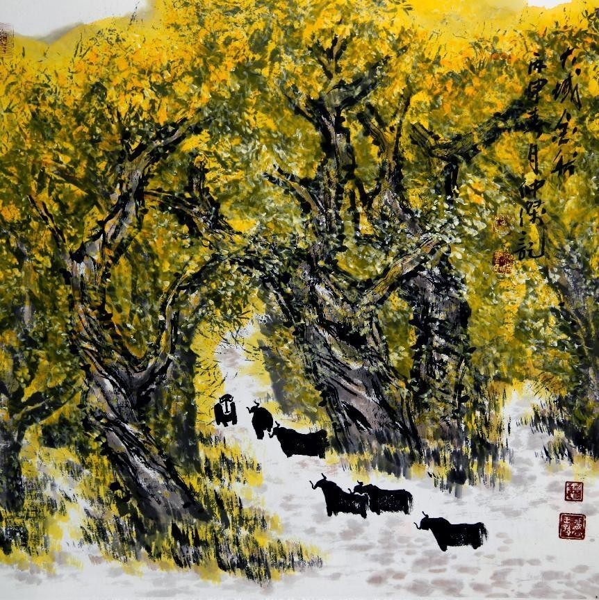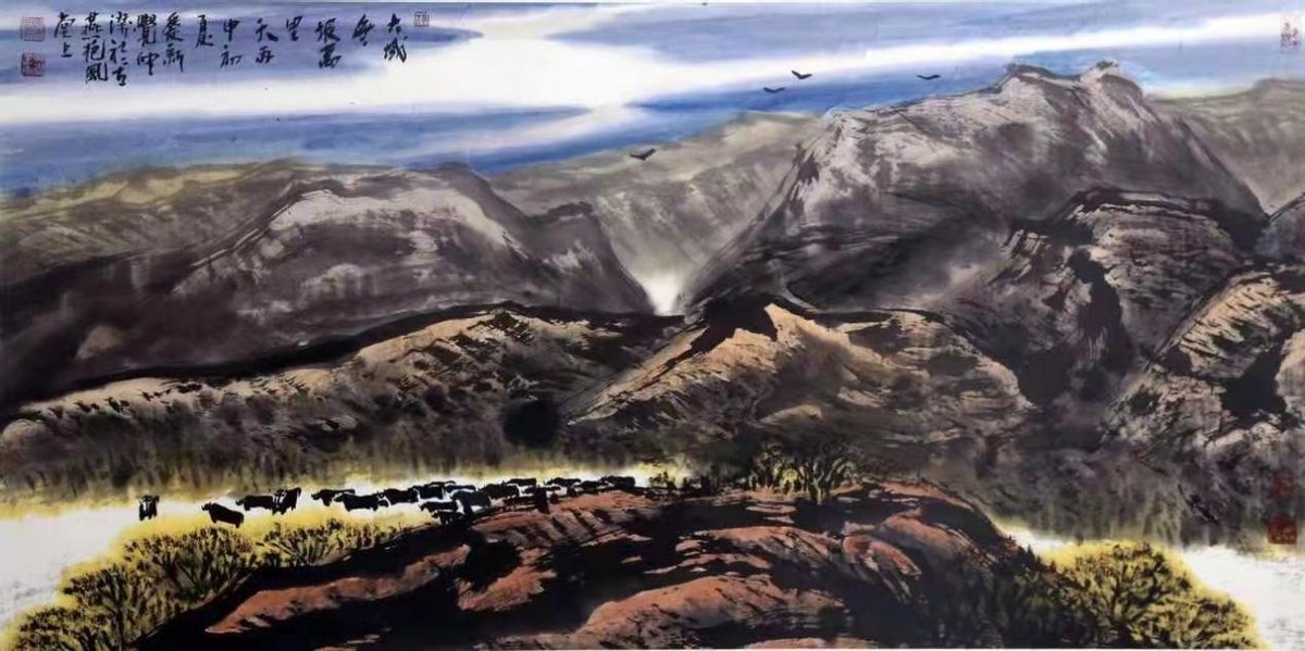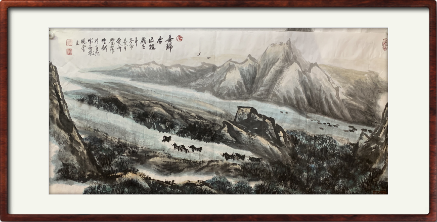 在浓墨重彩中塑造山水,在磅礴山水中抒发清风情怀,赵仲杰立丹青自动心,重笔墨寡世俗,作徐徐清风,写牛羊悠然,品味良久,心神可安,心意随之入画,共振意境之妙、八千里人间疏山,抚世间观者心神,观这般山水,独与天地精神往来!