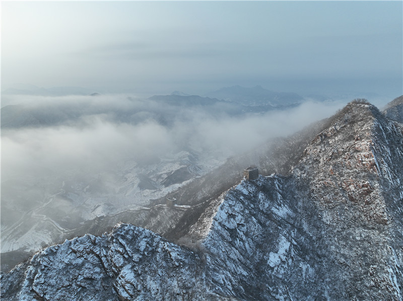 当日,河北迎来降雪。皑皑白雪覆盖长城内外,景色壮美。新华社发(周万平 摄)