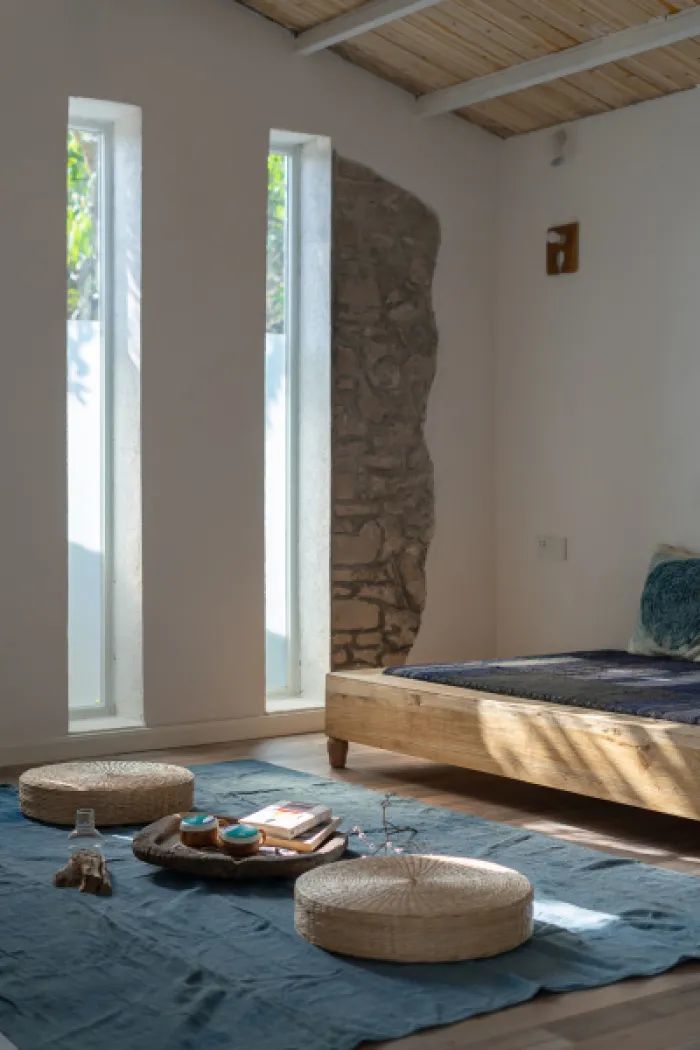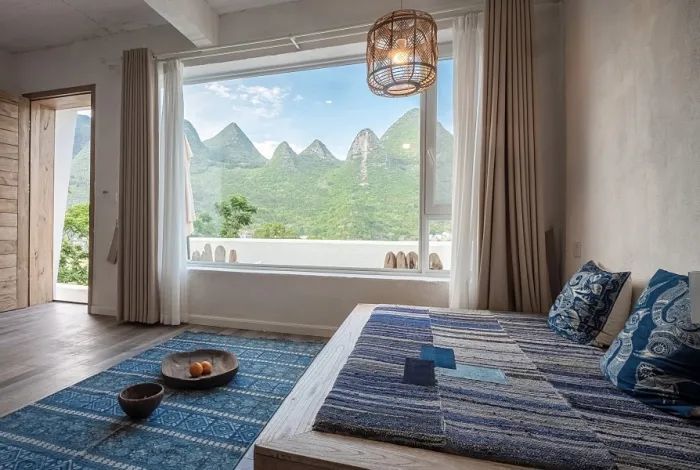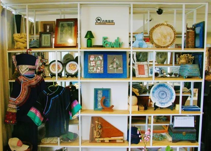 民宿内部是乡村朴素民族风格,处处都保留着老屋的痕迹。在民宿主荣姐看来,民宿应该是以“民”为主。在民宿设计前期,从建筑施工到软装设计,她全部亲力亲为,从收购绝迹的老绣片,拜师学蜡染、扎染等,到开始做非遗文创产品,很好地把贵州少数民族的元素搬进室内空间,品味独具,自成风格。