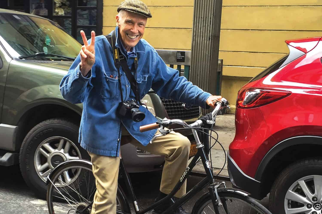 一身蓝色工装外套是他的标志,再加上一辆二八自行车、一部老式的尼康相机,这就是比尔的全部。
