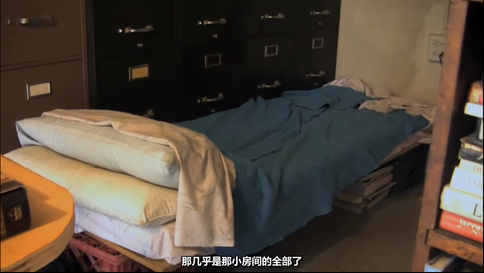 除了一张用纸盒垫起来的板子当做单人床,和一大堆过期的时尚杂志之外,他一无所有。