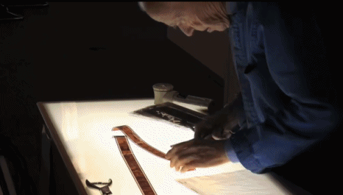 一盒小小的胶卷,他看了再看,双手摩挲,充满不舍。