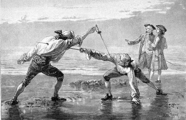 荣誉决斗的规则是由法国人建立并完善的,涵盖了决斗各方面的细节和礼仪:决斗者在什么样的情况下可以发起决斗、担任助手及证人的条件、佩戴首饰的要求等等。最重要的是决斗要符合古礼,当然这个古礼也是他们凭空想象的,就是见血即停。除非双方举行的是生死决斗,不到一方倒下决不罢手。