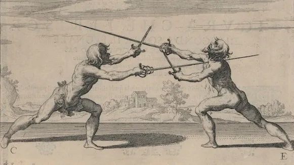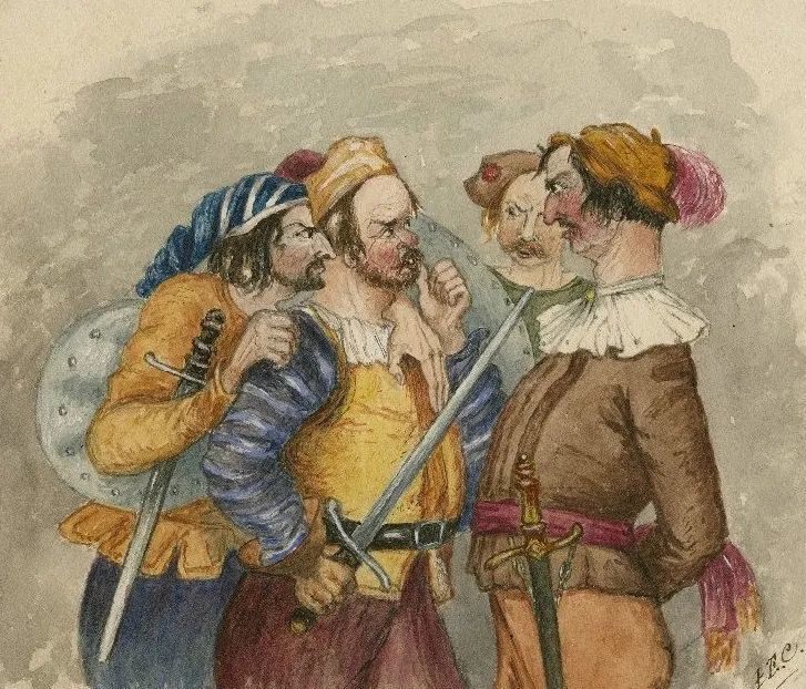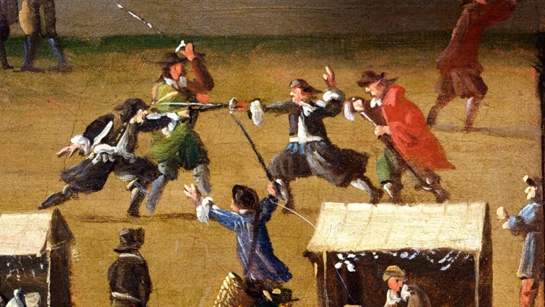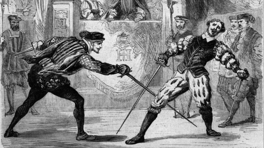 等到16世纪末荣誉决斗普及到欧洲下层阶级后,这些规则条例早就被市民们抛掷脑后了。能让街坊们拔剑相向的往往都是些鸡毛蒜皮的事,类似“你瞅啥”“瞅你咋地”。如果那些满脸横肉对着手机口吐芬芳的快手大哥们穿越回16世纪的法国,可能用不了三天就让人连骨灰都扬了。