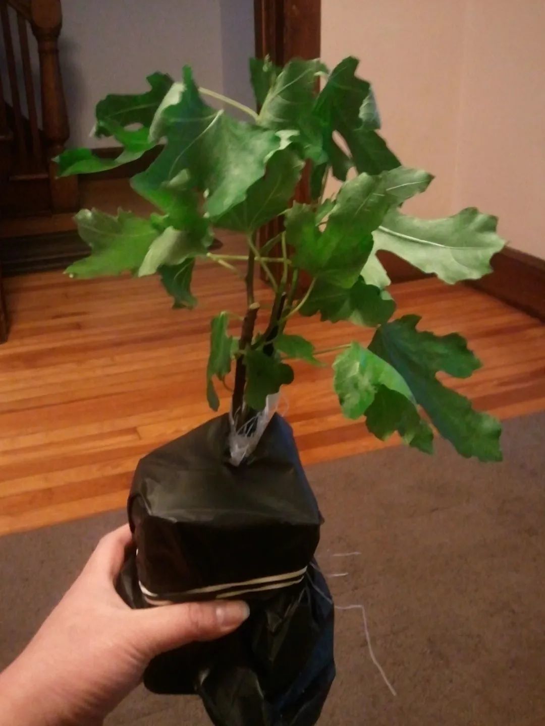 我们一开始买的盆栽果树小苗,不能一下子换到特别大的花盆中,就比如刚买来的无花果幼苗,是用一个10多厘米大小的花盆栽种的,不能一下子换到一个50多厘米直径的大盆里,那肯定会导致积水烂根。
