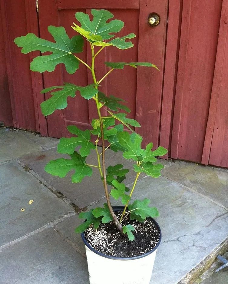 就比如一开始买的是一加仑的盆栽无花果,刚买回来不要急着换盆,先养好根,等它适应新的环境了,过了一两个月后就可以给它换盆,第1次换盆就可以换到两加仑的花盆中,下次就可以继续换到三加仑、四加仑,最后换到有七加仑的花盆中就差不多了,每年换盆一次,这些无花果基本就可以保持每年孕育很多的果实。