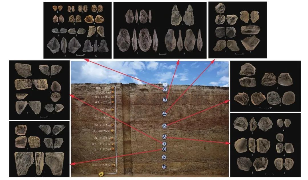 皮洛旧石器时代遗址面积约100万平方米,是国内外罕见的超大型旧石器时代遗址。本次发掘在青藏高原东麓揭露出七个连续的文化层位,发现罕见的旧石器时代文化三叠层(简单石核石片组合-阿舍利技术体系-小石片石器体系),其中第3层不晚于距今13万年。遗址出土的手斧与薄刃斧等石制品是目前东亚地区形态最典型、制作最精美、技术最成熟、组合最完备的阿舍利组合。