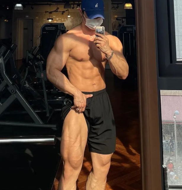 腹肌块状分明,大腿青筋暴露,二头饱满结实