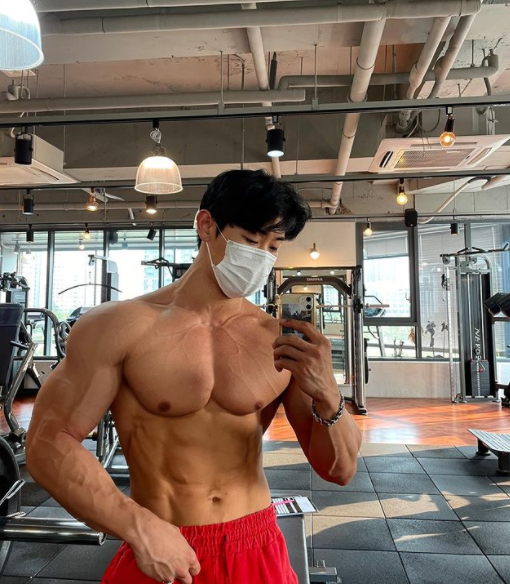 他也很大方地在镜子前完美展现力量之美