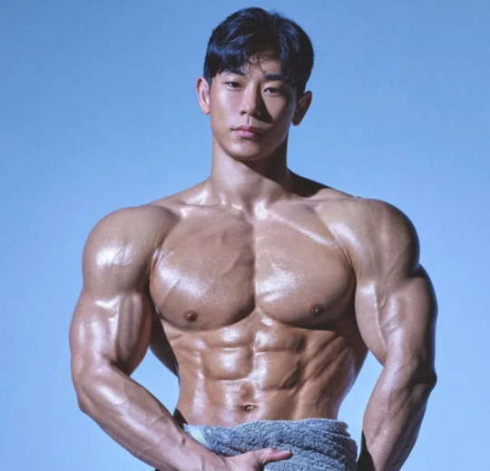 而他的肌肉体型却非常壮硕魁梧