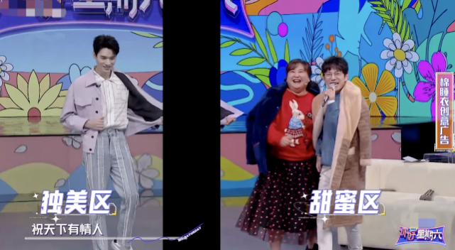 而何炅也十分配合地站起来,与贾玲在一旁表示,祝天下有情人都能够拥有一款棉睡衣,此时两个人甜蜜的画面与一旁龚俊落寞的画面,形成了鲜明的对比,而观众也被贾玲的高情商以及现场快速地反应逗得哈哈大笑。