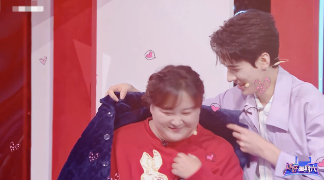 贾玲扮演的是在路边等候朋友的小姐姐,龚俊看到她在寒风中独自等待非常心疼,于是想要将自己身上的棉睡衣披在她的身上,可是却没想到对方在等待的人居然是自己的男朋友,两个人通过言语之间的往来,将现场的情节进行了再三反转,充满了笑点。