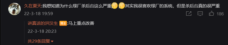 评论区中热度最高的评论就是“OPPO 的系统杀后台严重”,洪汉生表示“马上重点改善”。
