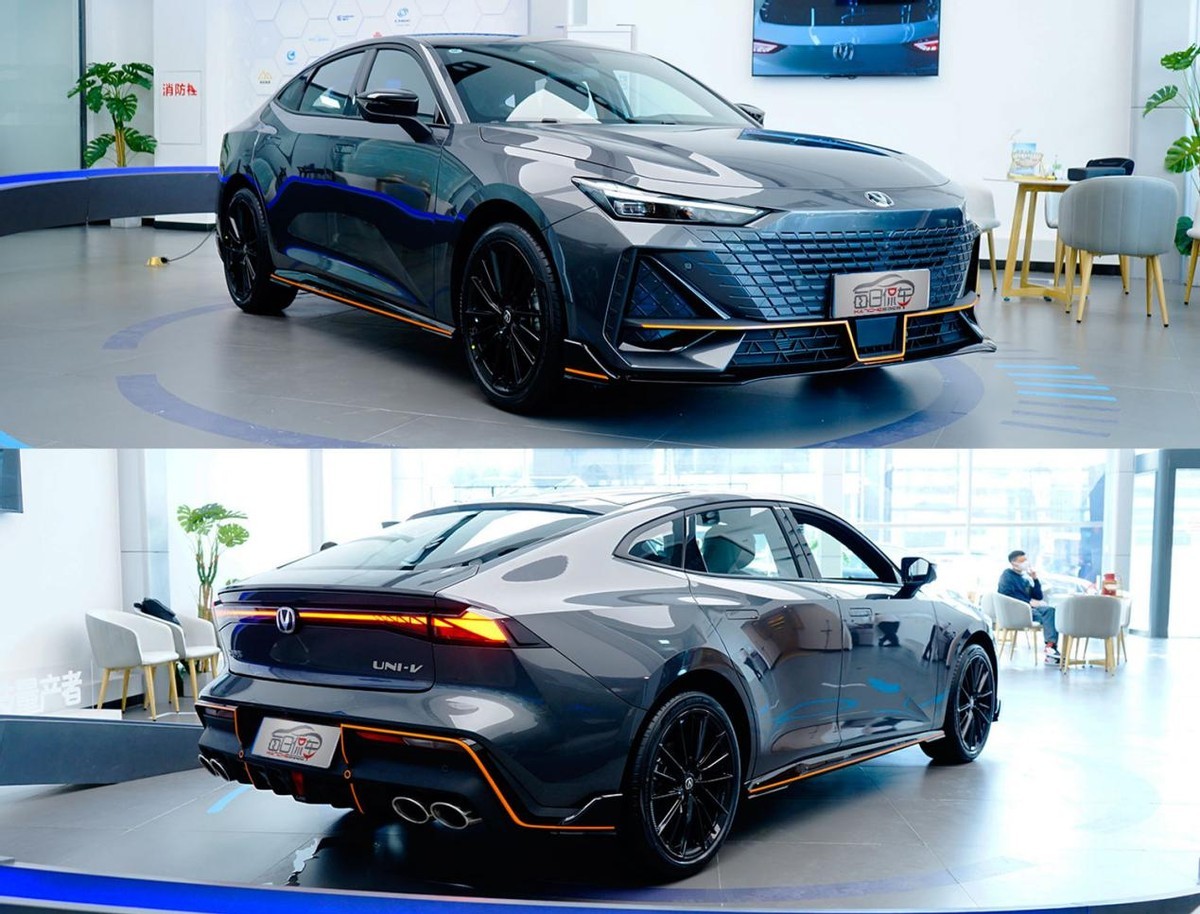 自合资品牌最强势的紧凑级轿车市场,去年上市的传祺影豹、名爵MG6 Pro等车型也取得了不俗的销量,这些车都有炫酷的外形、时尚的液晶仪表、好用的车机,甚至都提供运动排气,让年轻人张扬的个性得到充分释放。作为针对年轻用户打造的UNI系列品类,自然也不能错过这个市场,他们的首款轿车UNI-V已经开启预售,4款车型预售价格为10.89-13.19万元,与前面两位对手可以说是针锋相对。作为后来者,UNI-V有哪些创新点来吸引年轻用户?近日我们在深圳顺奔长安对2022款1.5T运动版(下称UNI-V)进行了实拍,看实车表现。