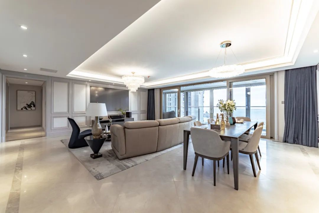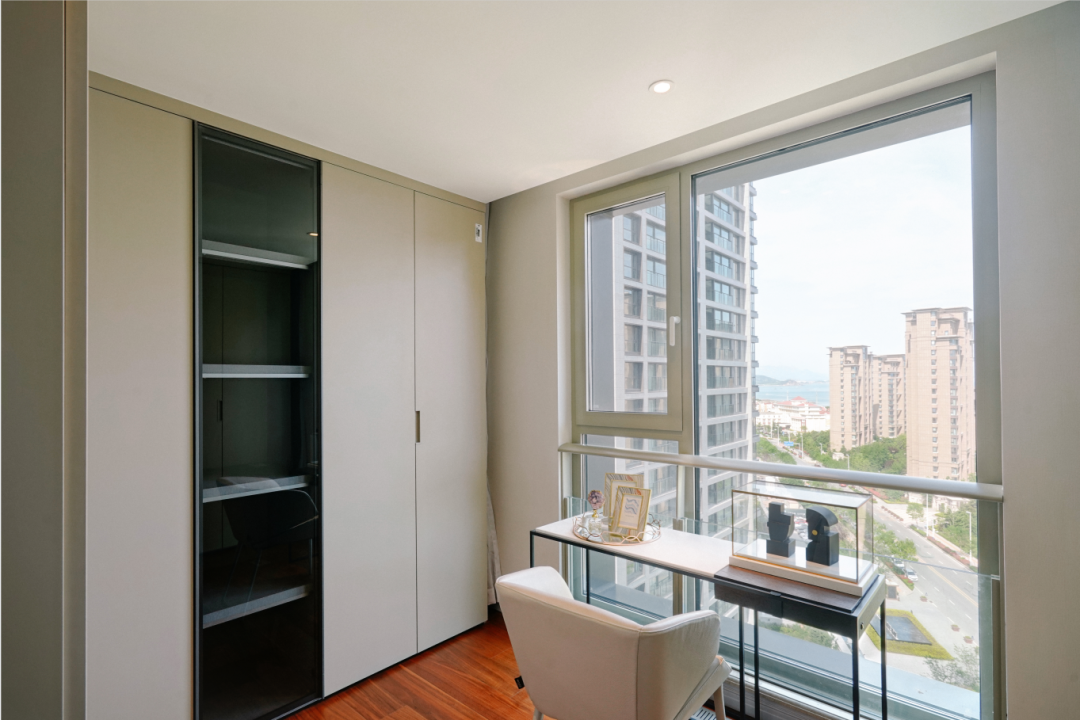 创新开合两宜阳台,外侧1.25m防火玻璃栏杆,内侧高档提升推拉门,开可亲近山海合则私享静谧。采用环保精装材料和HEPA除霾新风系统,控制室内颗粒物浓度,室内空气质量优于现行国家标准。