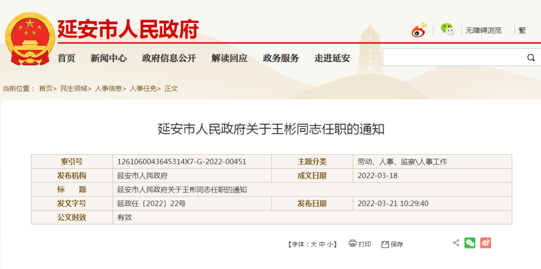 王彬同志任延安市城区改造指挥部办公室副主任。
