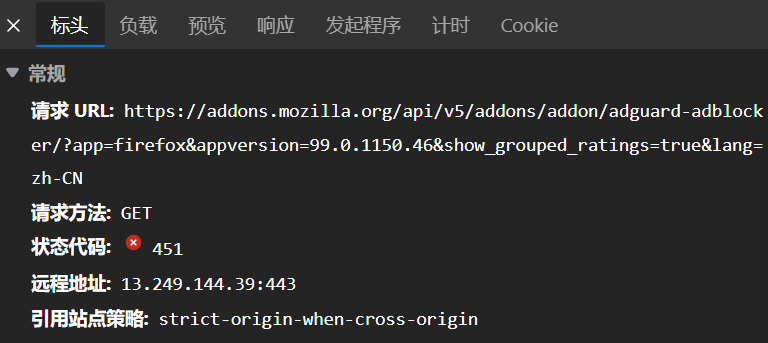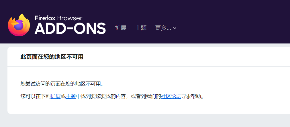值得注意的是,无论是国内版火狐浏览器,还是国际版火狐浏览器,都使用的是一个 Firefox 扩展商店,因此更换国际版无法绕过此限制。