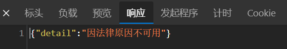 检查工具显示,请求返回的状态码为 451,响应内容显示“因法律原因不可用”。