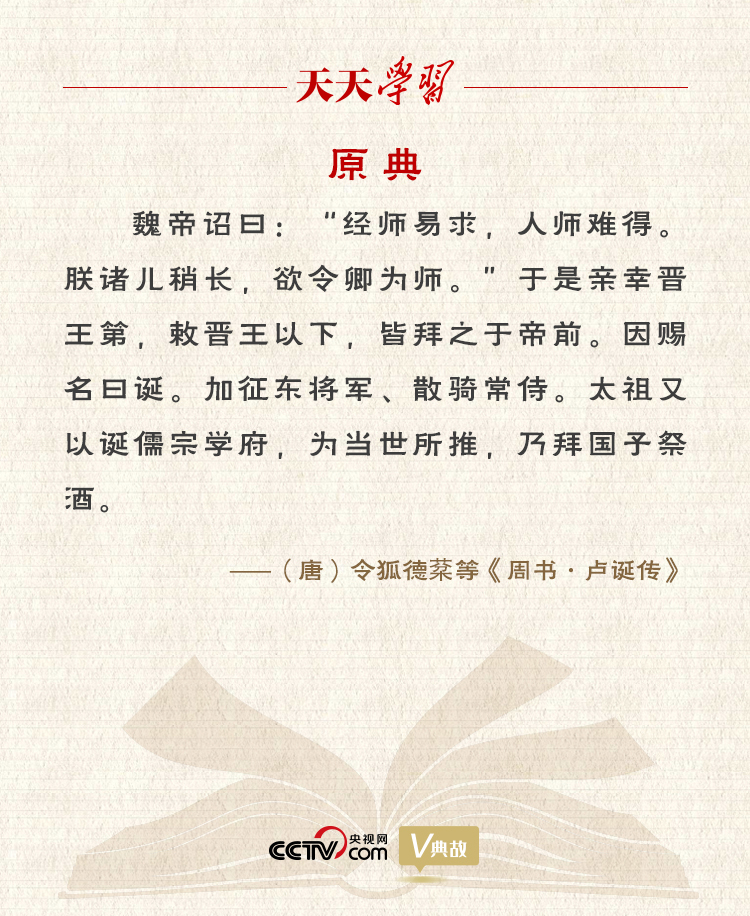 “经师易求,人师难得”语出《周书·卢诞传》,意思是找一个只是传授经学知识的老师很容易,找一个教你怎么做人且以自己的行为加以示范的老师却很难。