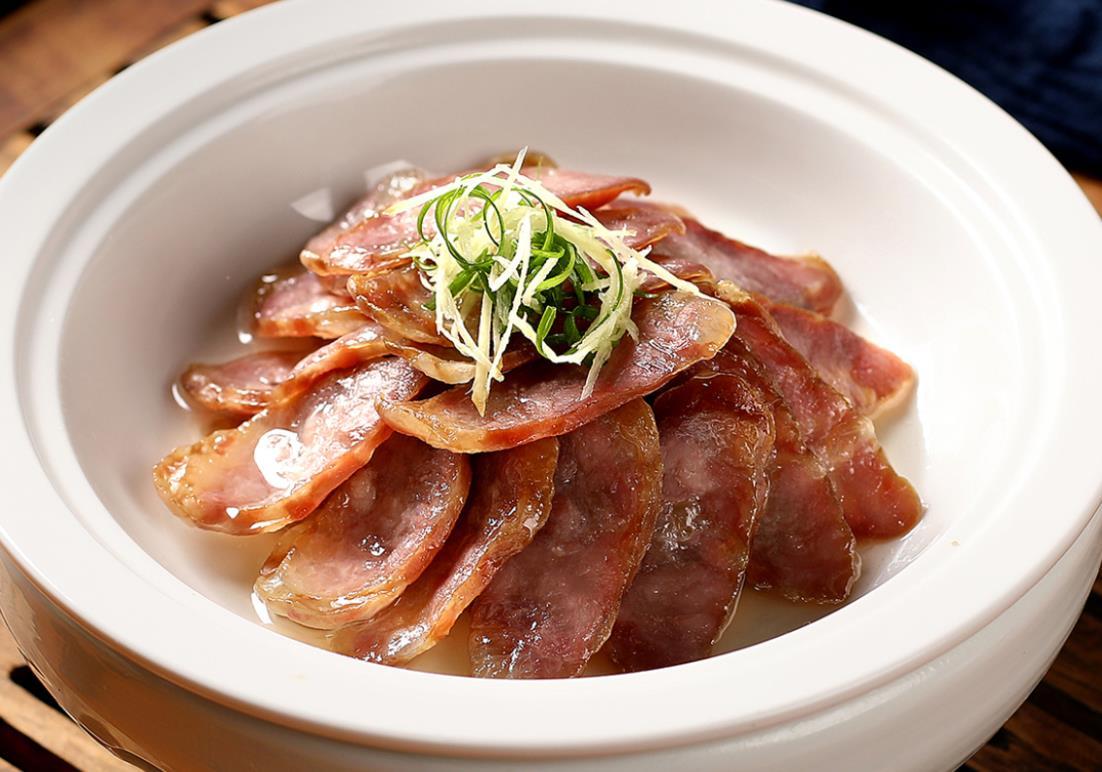 江礼明董事长:在徽菜整个的菜系中,腊味作为主食材,或者辅料、调味料等在徽菜经典菜、传统菜和创新菜品中占据50%-60%;徽菜的经典菜肴,春夏秋冬四季的时鲜菜品,都有腊味参与,徽州有“火腿佐味”的特点。
